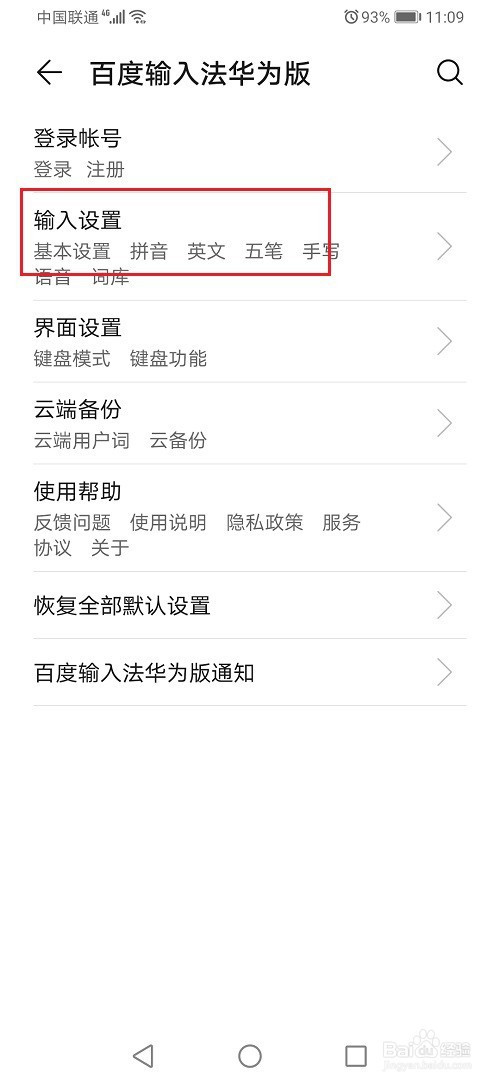 第三步进去说话和输入法之后,点击百度输入法华为版,然后点击输入设置