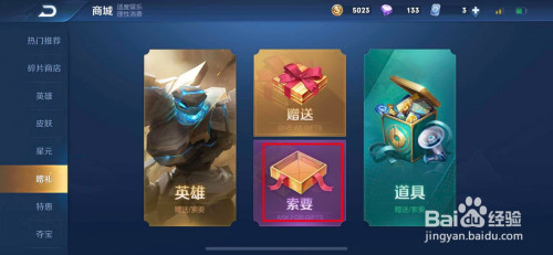 点击皮肤后就会呈现两项选择,我们点击索要。