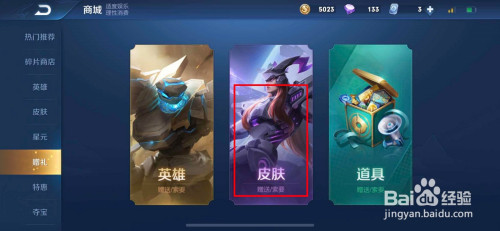 进入到赠礼的本家儿页面后,我们点击进入皮肤选项。