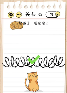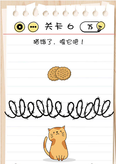 脑力测试过关攻略关卡6:猫饿了,喂它吧!谜底攻略:用手移动饼干到标题问题中的“猫”字上,图片中不止一只猫哟,“猫”字也是猫。