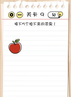 脑力测试过关攻略关卡9:接下5个失落下来的苹果!谜底攻略:细心不雅察会发现,屏幕中不仅有失落下来的苹果,还有往上飞的苹果,所以注重点击往下失落的苹果,点击5个,而不要去点击往上飞的苹果。