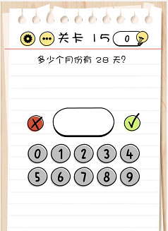 脑力测试过关攻略关卡15:几多个月份有28天?谜底【12】;攻略:其实一年的每个月都有28天,所以谜底是12个月。
