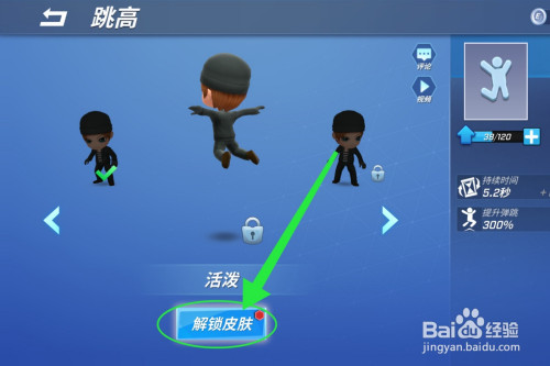 进入跳高新皮肤的页面,然后点击当即解锁;