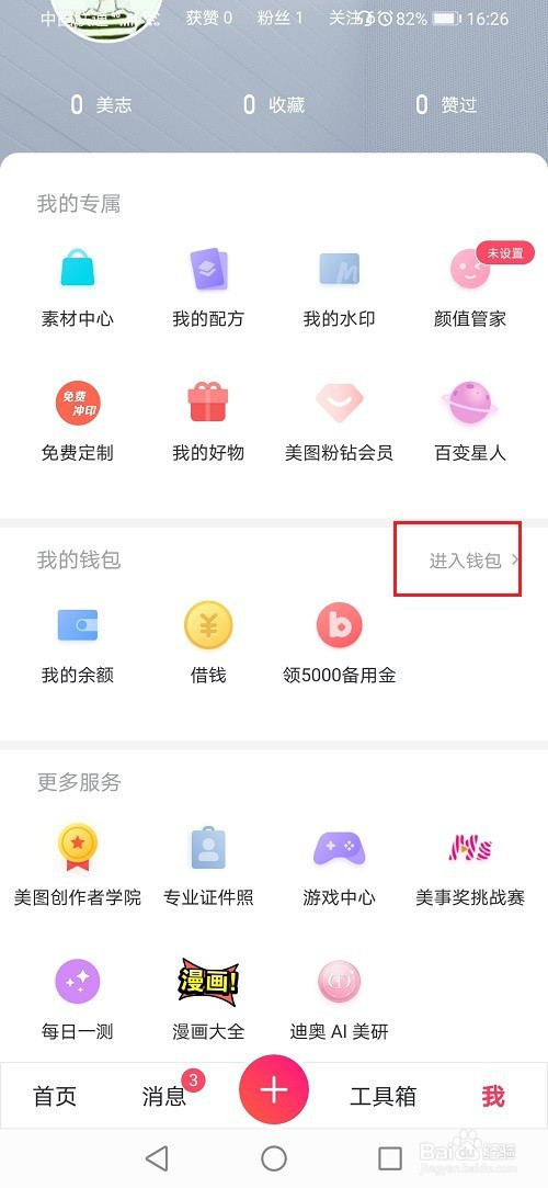 第二步进去美图秀秀我的界面之后,点击我的钱包