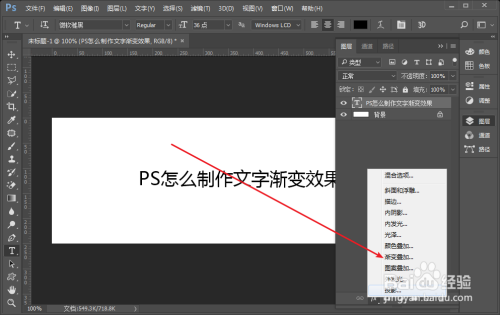 打开图层面板,选择文字,点击【添加图层样式】