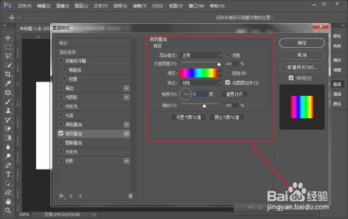 设置渐变叠加结果的【参数】并点击确定!