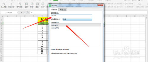 输入CountIf函数。