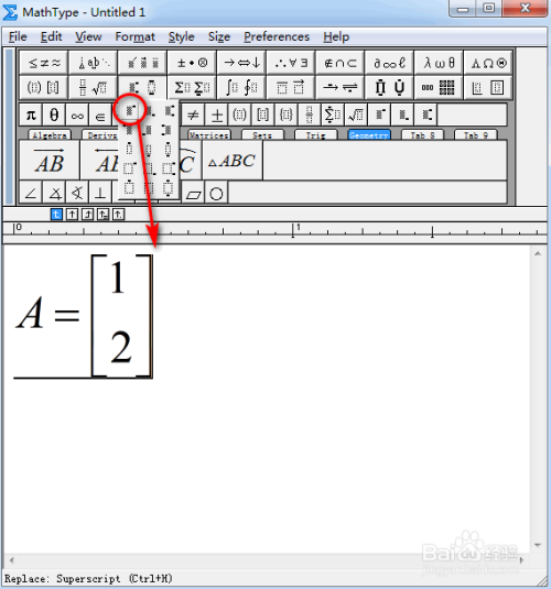 接着,输入-1作为上标,具体如图所示: