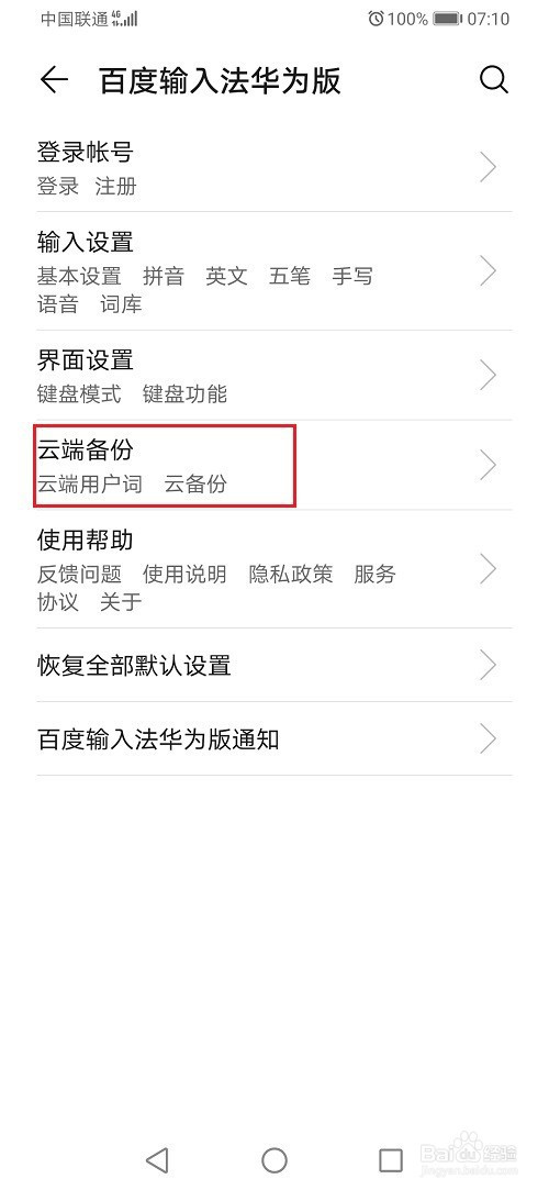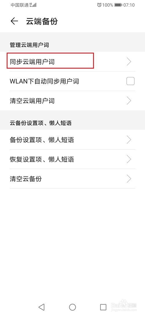 第五步进去之后,点击同步云端用户词,华为手机输入法就同步云端用户词了,按照需要利用