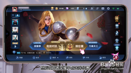 再点击确定,去打排位赛累积战力获取荣耀称号