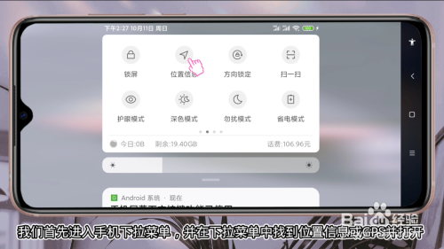 我们首先进入手机下拉菜单,并鄙人拉菜单中找到位置信息或GPS并打开