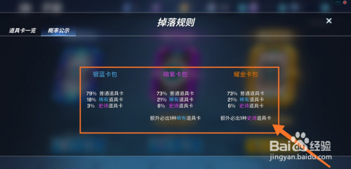 第六、在概率公示页面,可查看三类卡包的失落落概率。