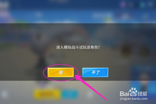 第四、弹出“进入模拟战斗试玩该脚色?”页面,点击“是”;