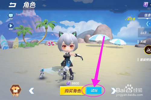 第三、进入到战斗少女脚色页面,点击“试玩”按钮;