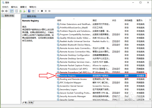 在右侧的窗格中,找到“Remote Registry”选项,然后双击鼠标。