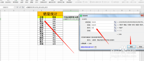 统计某种类的销量总数,在前提1和区域1中选择对应的单位格,最后点击确定就可以了。