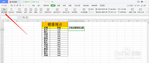 统计某种类的销量总数,点击FX。