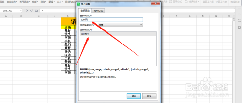 统计某种类的销量总数,输入sumifs函数。