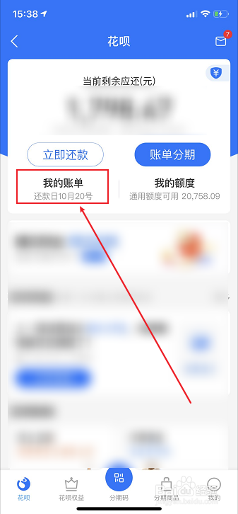 点击打开【我的账单】