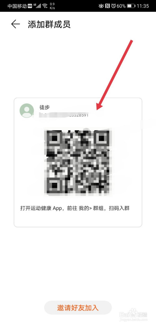 点击进入二维码页面后,即可看到本群组的二维码,我们可以让老友直接扫描该二维码,即可插手活动群组。