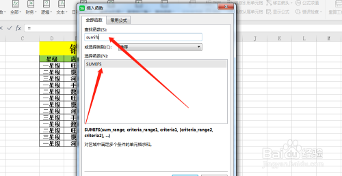 利用sumifs函数,别离在前提区域中选择对应的单位格,最后点击确定就可以了。