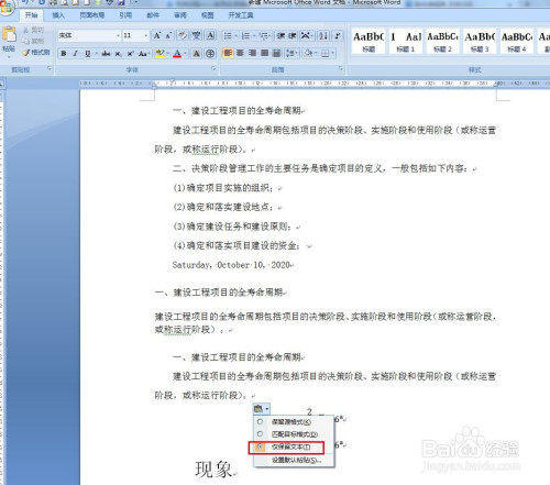 鄙人拉对话框中选择“仅保留文本”即可。
