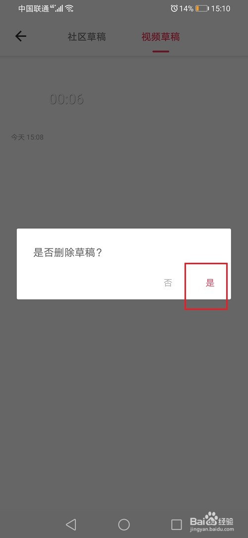 第五步弹出框之后,点击是,就当作功删除草稿了