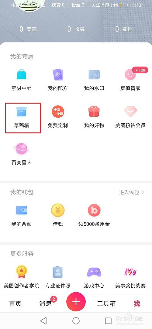 第二步进去美图秀秀界面之后,点击草稿箱