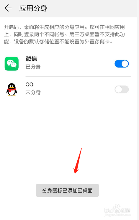 返回击机桌面,就可以看到有两个微信了,可以用分歧的账号别离登录2个微信。