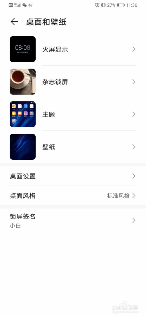 进入设置菜单之后,我们在里面找到一个叫做桌面和壁纸的设置选项。