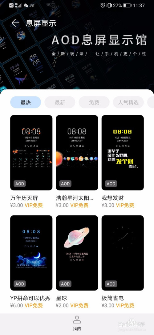 这样,我们就来到了壁纸界面,点击一下最上方的灭屏显示。