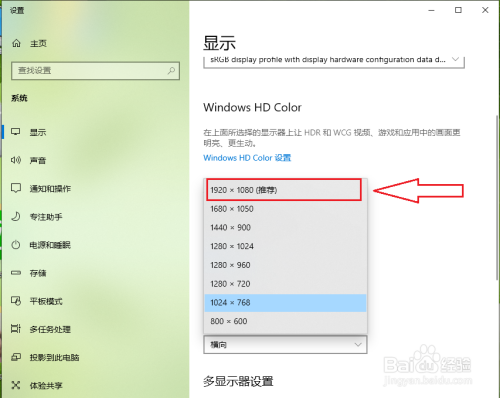 在弹出的选项中,选择“保举分辩率”,例如点击“1920x1080(保举)”。