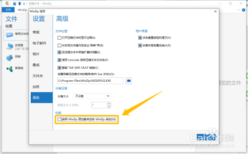 在“高级”选项中,勾选“启用 WinZip 预加载来加速 WinZip 启动”选项的勾选开关。