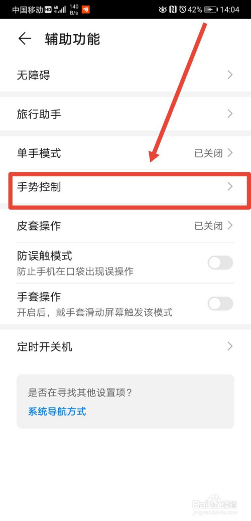进入到辅助功能页面后,继续点击进入手势节制页面;