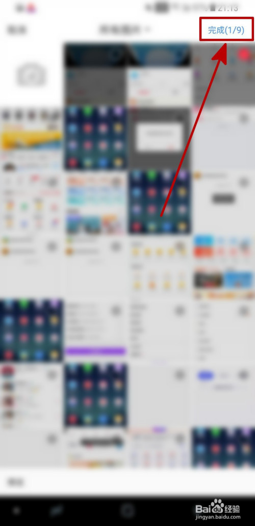 进入相册页面之后,选择合适的图片,之后点击页面右上角的“完当作”即可。