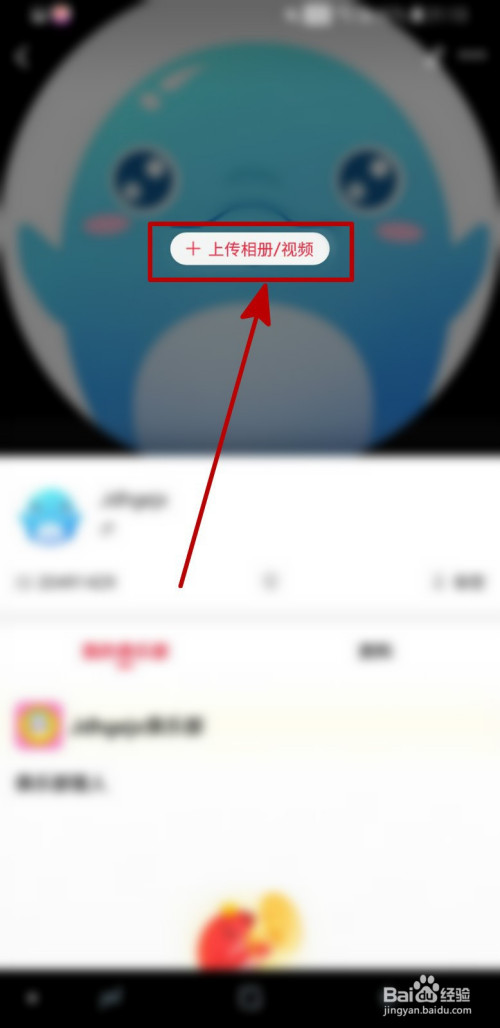 2、进入小我本家儿页页面之后,点击“上传相册/视频”。