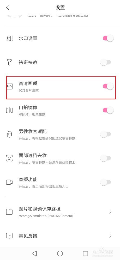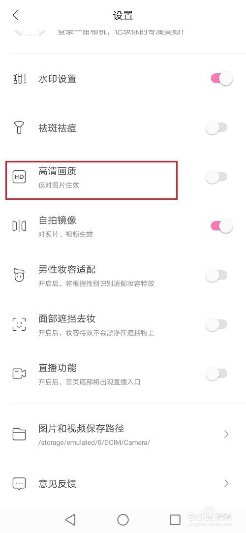 第五步点击之后,就开启一甜相机高清画质了,按照需要设置