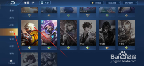 选择之后,在点击选择刺客,然后找到并点击赵云的头像。