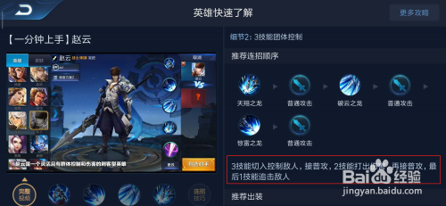 进入之后,可以看到赵云官方讲授,此中连招挨次为3-a-2-a-1。