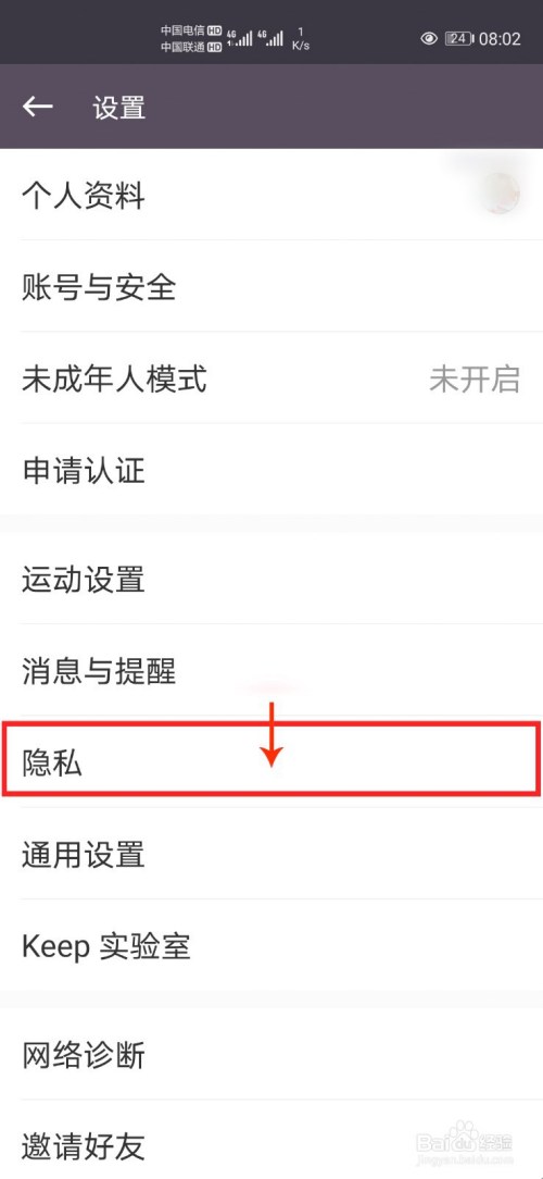 进入设置界面后,点击【隐私】。