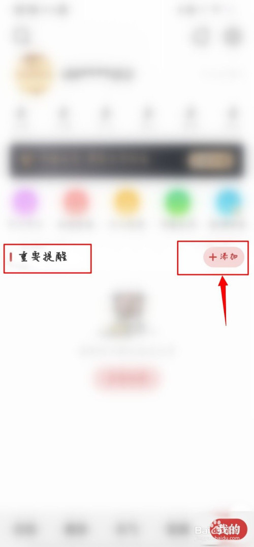 接下来,我们在【我的】页面中找到【主要提醒】,点击后方的【添加】。