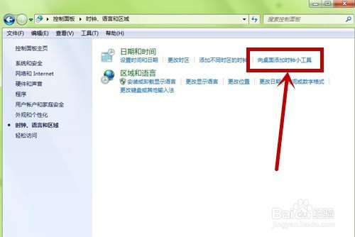 在弹出页面右侧选择【日期和时候】下的【标的目的桌面添加时钟小东西】单击