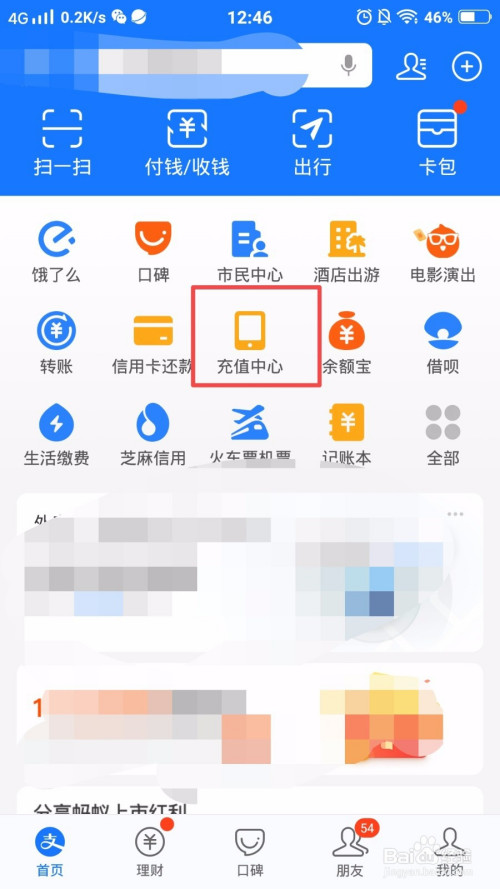 进入首页后,点击【充值中间】;