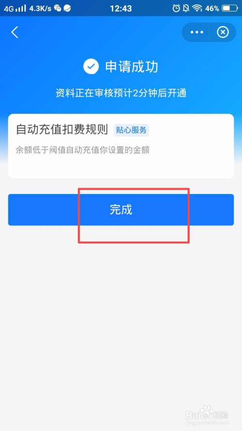 这时看到【完当作】,就代表已经开通当作功,今后只要余额低于20元,就会主动充值,再也不消担忧手机停机了。