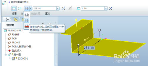 按照需要选择深度的分歧选项,好比对称如下图结果,往草绘平面两侧对称拉伸。