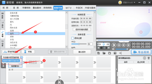 第三步:点击漩涡滤镜特效,点击添加气概结果,选择指按时间段添加气概,如图所示。