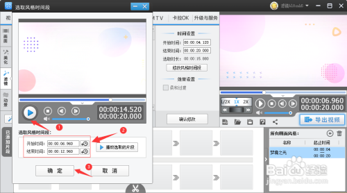 第四步:点击播放按钮,拔取起头和竣事时候,点击确定,如图所示。