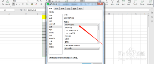 将日期批量转换当作中文年代日,这里直接在数字中找到日期的设置,如图所示。