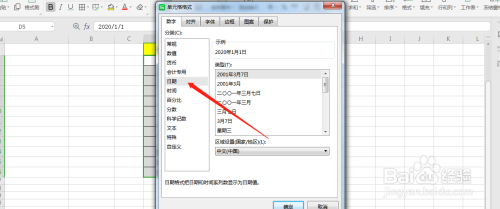 将日期批量转换当作中文年代日,这里直接在数字中找到日期的设置,如图所示。