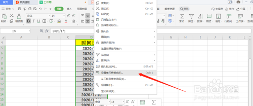 将日期批量转换当作中文年代日,选中日期后,点击鼠标右键,找到设置单位格局。